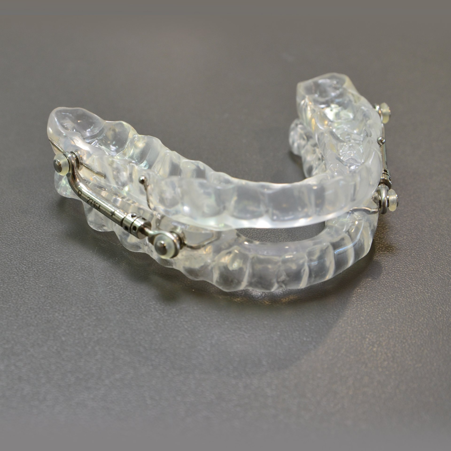 Diese Kunststoffschienen halten während des Schlafens Ihren Unterkiefer vorn und somit bleiben die Atemwege frei und die Schnarchprobleme werden reduziert bis komplett beseitigt.